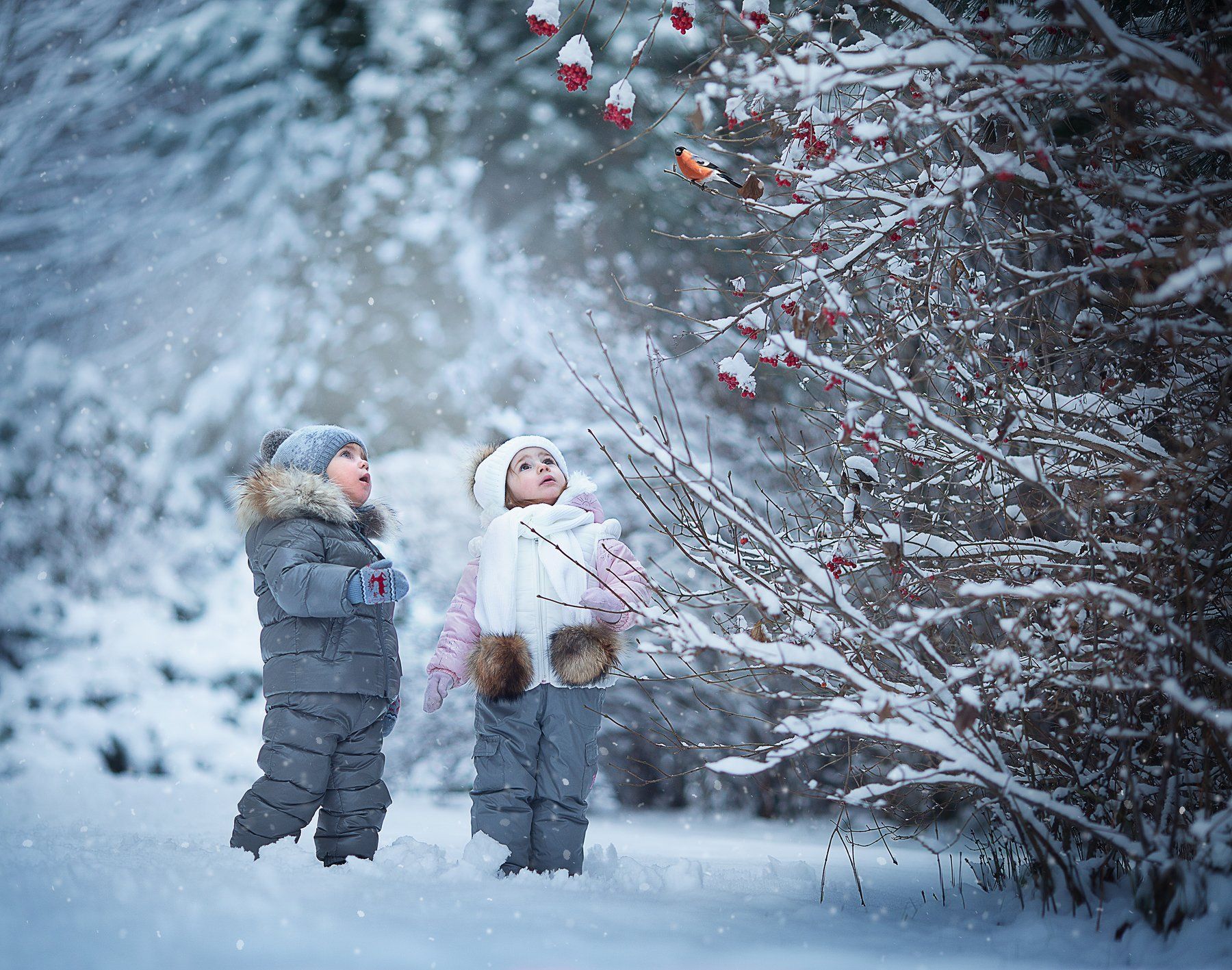 Коллаж? У нас снегири очень пугливые, так просто сидеть не будут :)