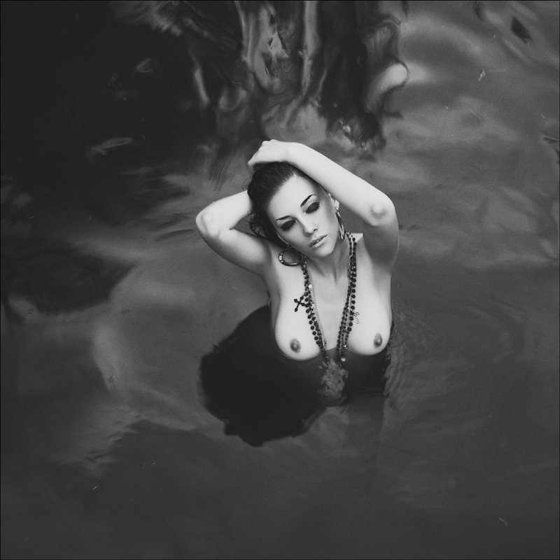 Красивая девушка в грязной мутной воде.