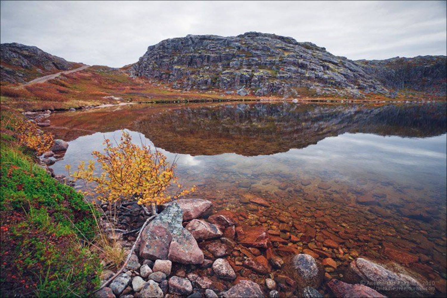 Картинки из маленького сентябрьского путешествия на одну из окраин Кольского полуострова,в Териберку.Вот уж где действительно край Земли,ведь дальше,на север, только неспокойные и хмурые просторы Северного Ледовитого океана.и под стать месту его наружность,суровые,почти голые скалы,непростой климат,постоянные ветра и нечастое и нежаркое солнышко...И словно пытаясь компенсировать скудость в этих местах своего растительного букета,природа отчасти компенсирует это красками!Особенно это ярко заметно по осени,когда теплыми красными и оранжевыми тонами начинает играть все более менее могущее прижиться среди камней и скал,надо только успеть бы это заметить,потому что явления очень скоротечное - один сильный ветер и пожухшая красота уже только хрустит у тебя под ногами...