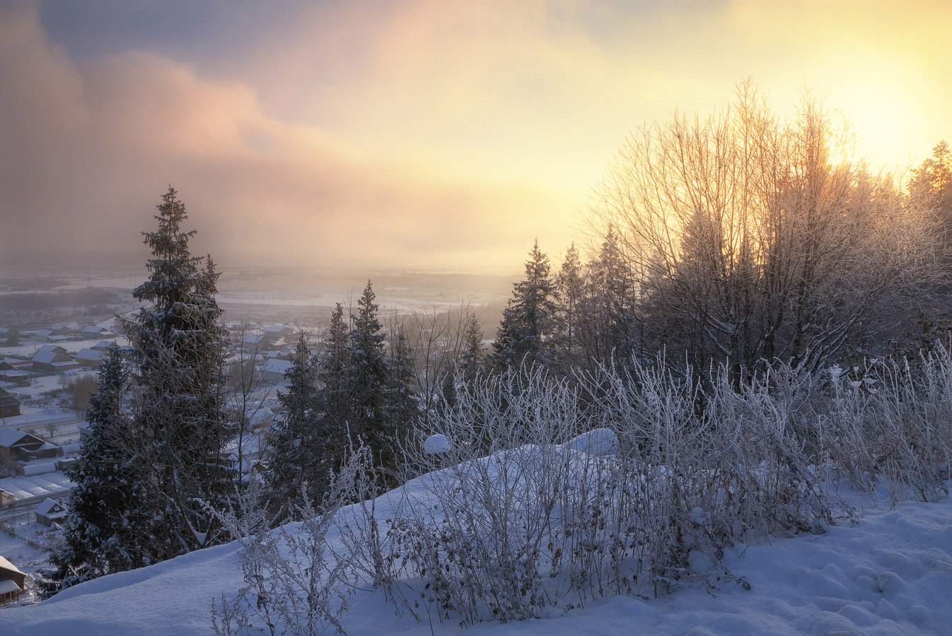 зима, закат, лес, парк, мороз, ель, рассвет, Смольский Евгений