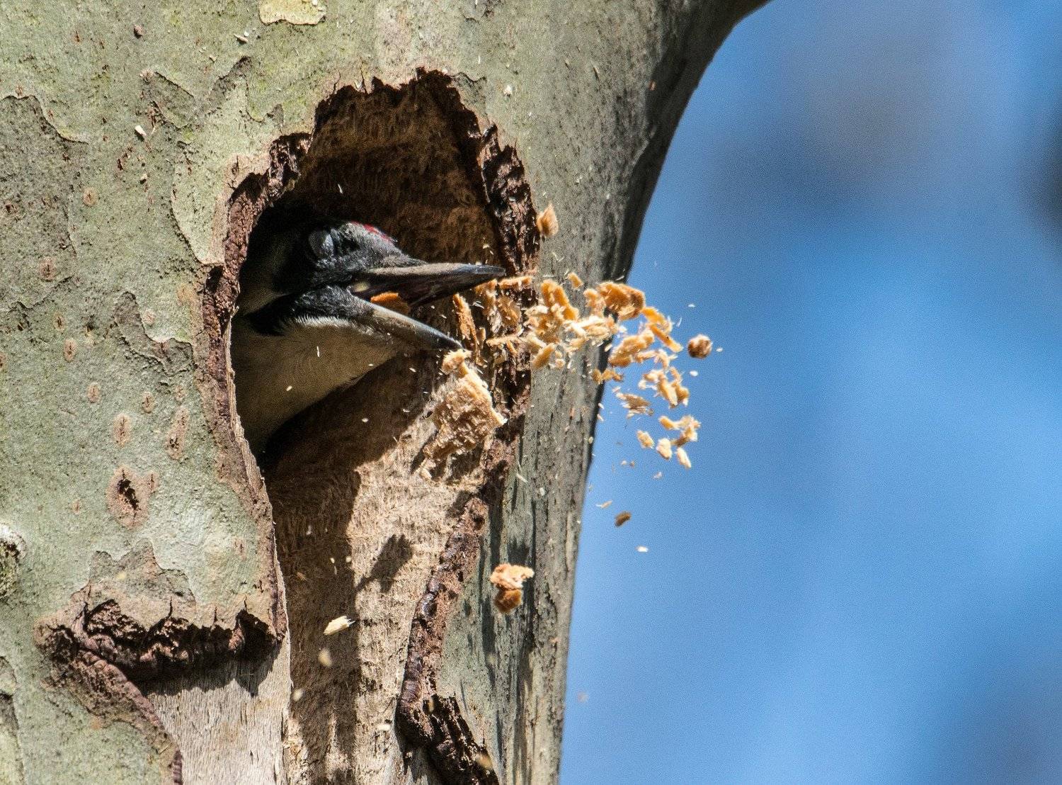 А я как-то наблюдала как бпд долбил дупло несколько дней...