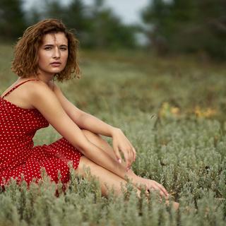 summer grass girl field day beautiful sundress ginger, Илья Чёрный