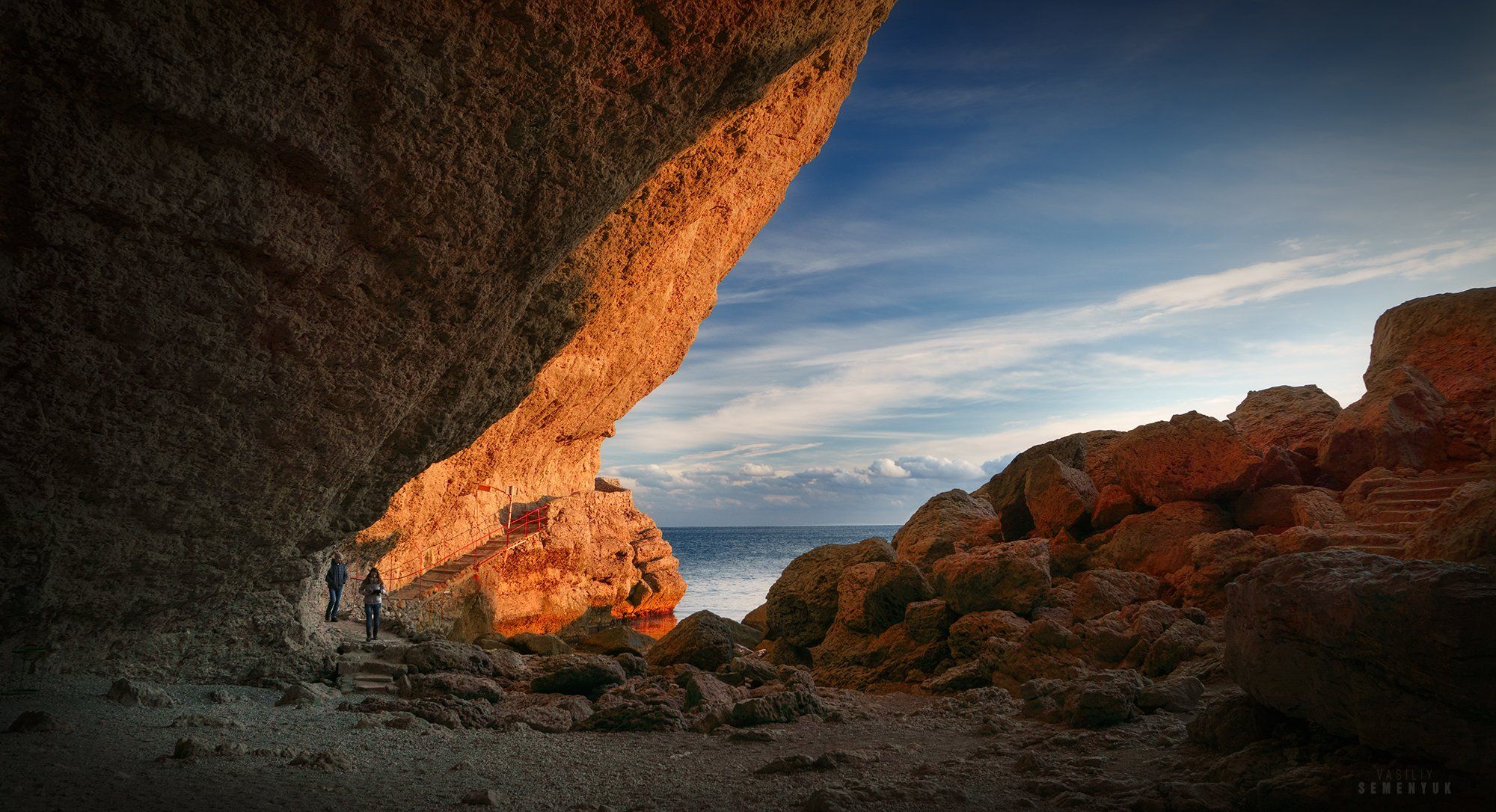 крым, новый свет, грот шаляпина, тропа голицына, зима, закат, скалы, море, crimea, groat, sea, dusk, landscape., Семенюк Василий