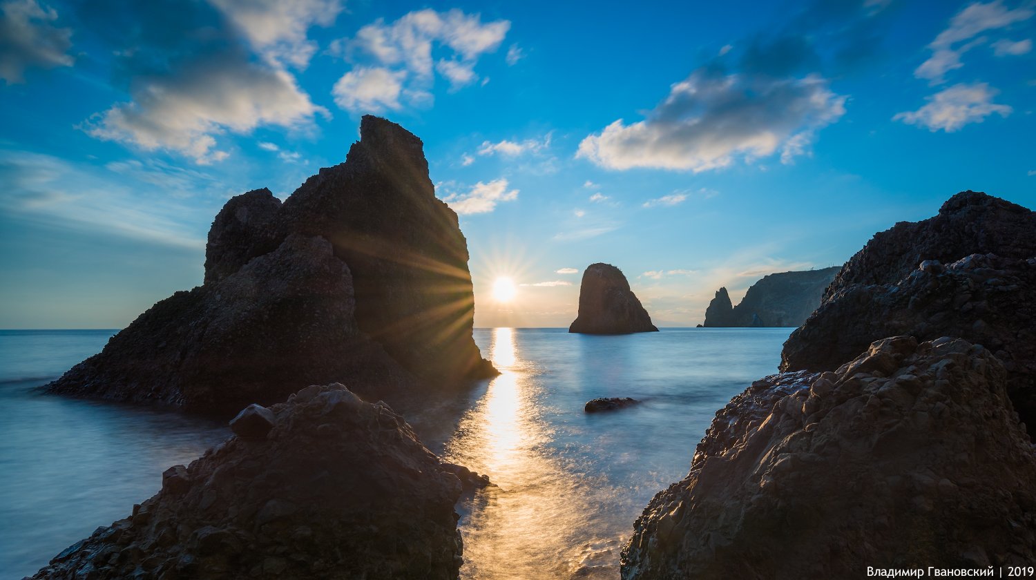 Фиолент удивителен. В монастыре — лёд и снежок, посыпанный песочком; на первом повороте семья снеговиков с бутылкой пива и снежные кролики; потом слякоть и коты на деревьях; на Яшмовом пляже тишь, купаются красивые женщины в кружевных сорочках. Все времена года — сразу! А у нас свой кайф — снимать, снимать, снимать! Уже год начался, а фото ещё нету... Достаём штативы, фильтры, в промежутках пьём чай с чудесным кексом, испечённым Лизой. Первый в году съёмочный день удался!