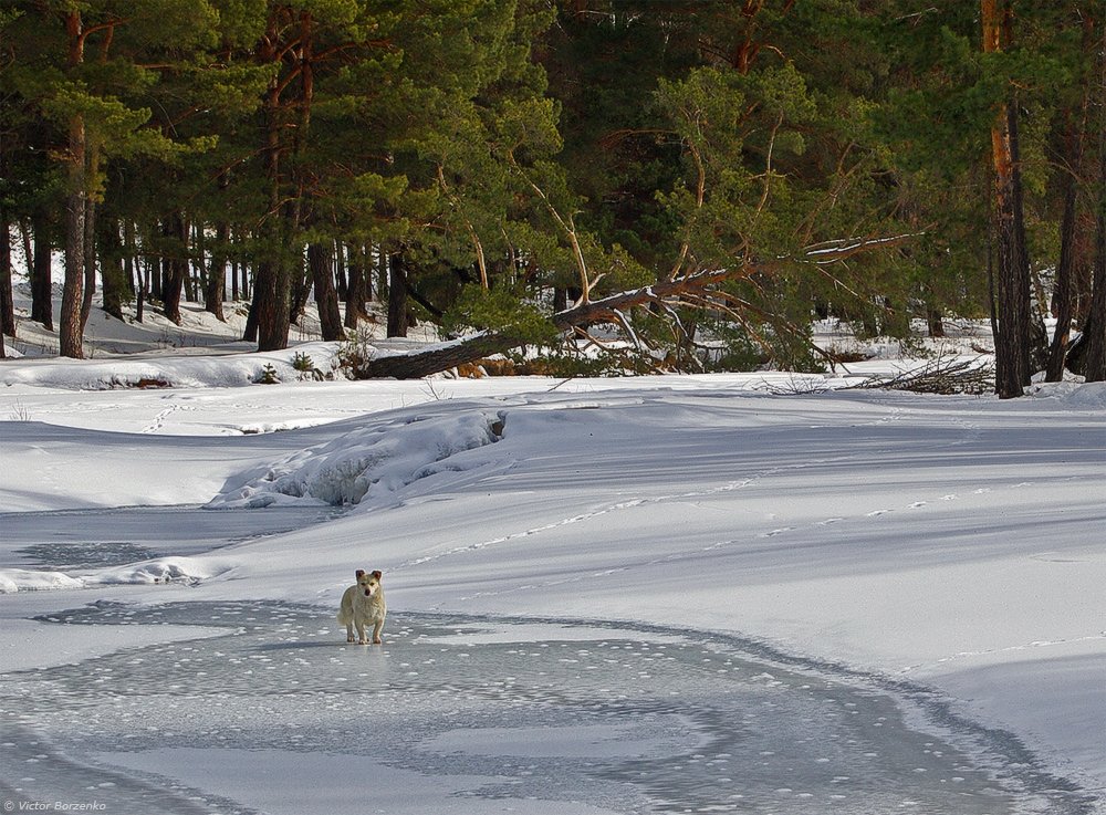 зима, лед, лес, собака, Виктор Борзенко