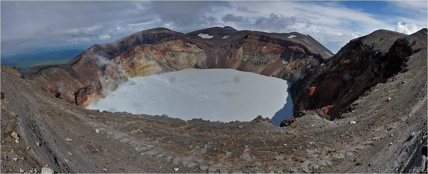 Кстати цвет озера в кратере,не стоит этого забывать,будет ещё и напрямую отчасти зависеть от погодных условий,света и фона над ним(неба)!:)
