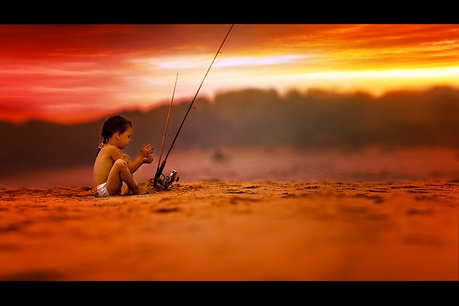 закат, девочка. рыбалка, удочки, пляж, Ирина