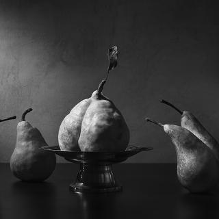 Наконец, все готово — осталось только выполнить съемку. Выключаем свет, жмем на спуск, встаем сбоку от нашего натюрморта и снимаем! Почему надо встать сбоку от натюрморта? Потому что освещать композицию лучше всего именно боковым светом. Боковой свет создает объем. Если же светить, стоя около камеры, то луч «припечатает» объекты к фону, и кадр получится плоским.