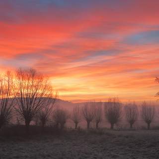 village, house, fields, morning, willows, countryside, hills, agriculture, Jacek Lisiewicz