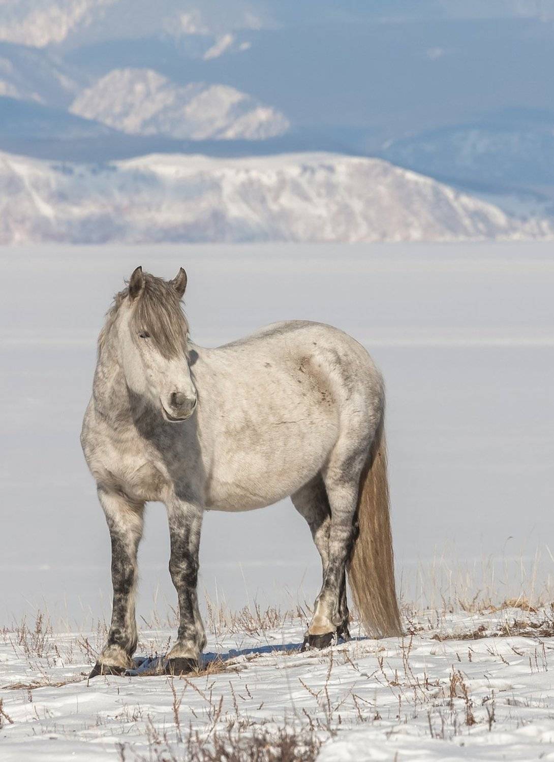Когда-то в степях вокруг Байкала водились мустанги, которые паслись на продуваемых круглый год холмах. Эти дикие животные заняли когда-то свою нишу в природной экосистеме Ольхона, заменив лошадь Пржевальского. Потом пришел человек и одомашнил часть из них для сельскохозяйственных нужд. В начале 20-го века после прихода технического прогресса значимость гужевого транспорта стала падать и к мустангам присоединились первые одичавшие лошади. Позже появилось племенное коневодство, которое тоже развалилось во времена перестройки. Местное население не смогло приютить более трех сотен животных, и тогда к диким лошадям добавились и племенные рысаки. К тому времени ольхонские степи уже были под охраной Прибайкальского национального парка, но смешанные табуны диких и одичавших лошадей официально дикими не являлись. И ринувшиеся в 90-х на Ольхон браконьеры забавы ради их вскоре отстреляли. Последние дикие мустанги байкальских степей были убиты на западном берегу в 1999 году. Сегодня же по ольхонским степям продолжают бегать маленькие табуны полудиких лошадей, за которыми частично приглядывают местные. На первый взгляд они ничем не отличаются от диких и не подпускают незнакомых людей на близкое расстояние. Но наверняка в них по-прежнему течет частичка крови диких мустангов.