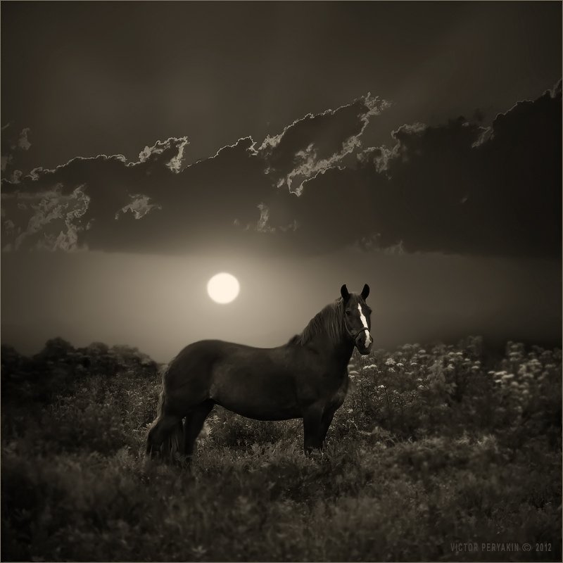 Интересно происхождение света на морде у лошади ..?