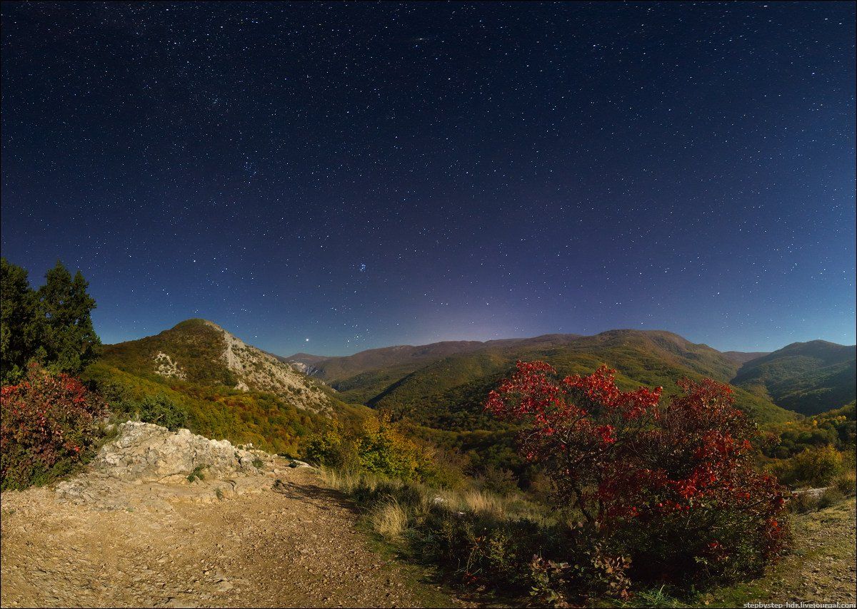 - всходящий Юпитер - самая яркая "звездочка" прямо над горами
