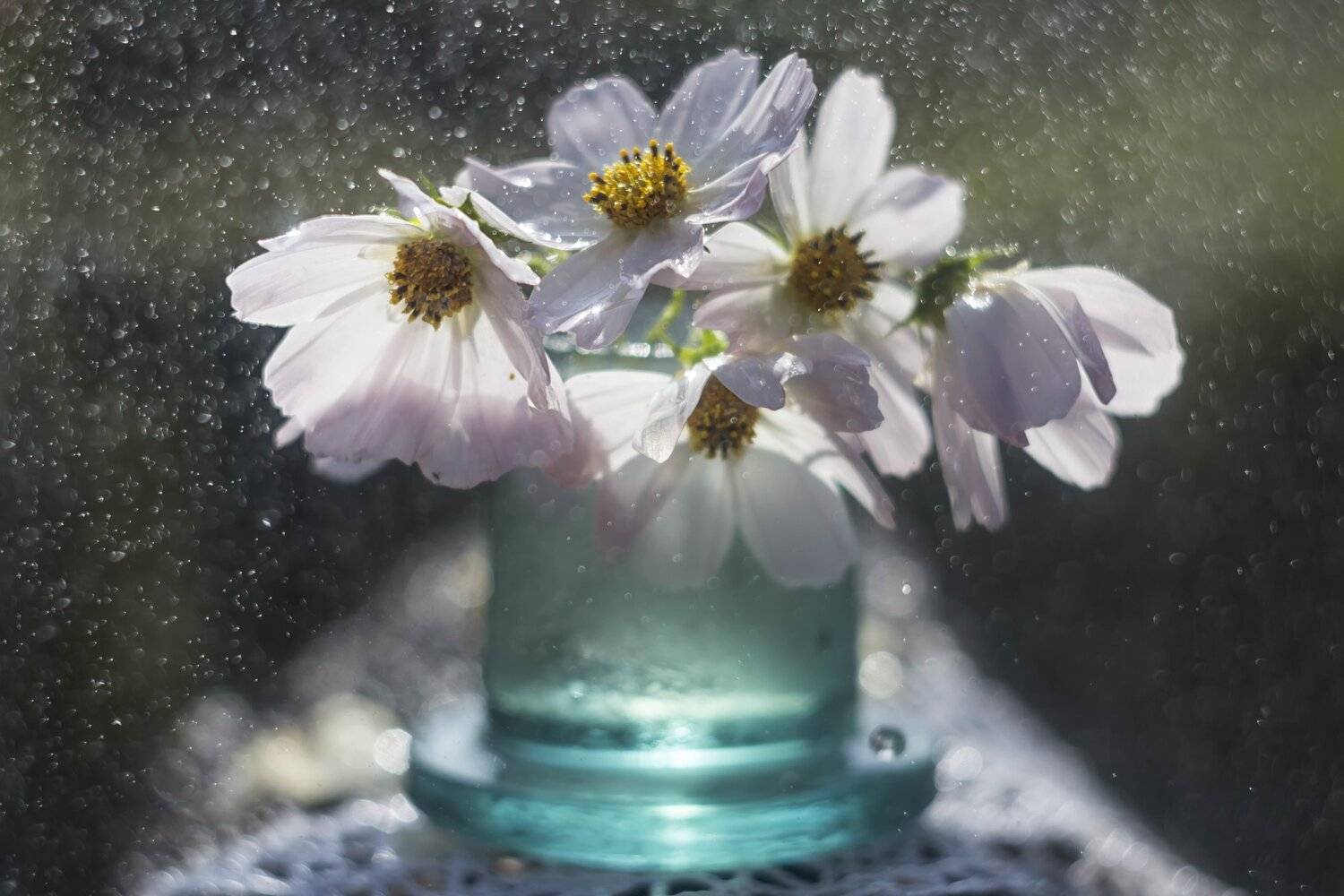 крупный план. космеякаплидождьсолнце
