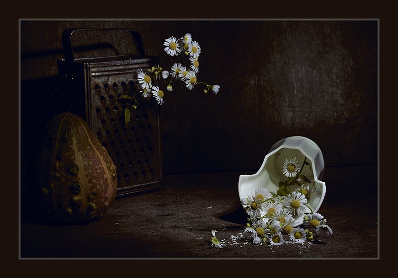 И надо было так случиться, доче дали задание в школе - сделать фото на камеру, подготовить и принести в школу. Работа совместная, композишн делали вместе, учились кнопки нажимать, свет ставить, выдержку, диафрагму. Вот и вышло сие. :)