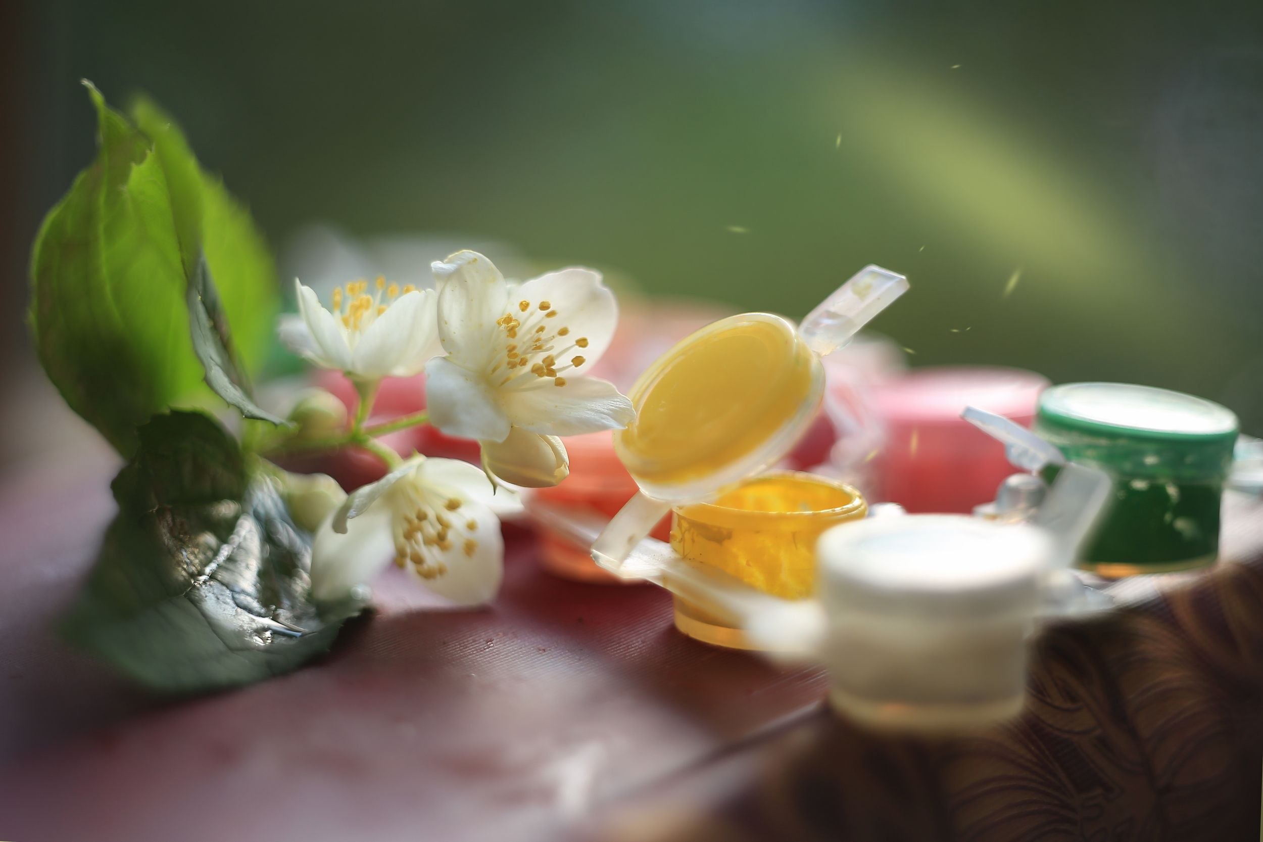 Веточка жасмина и глубина, прозрачность, кругом так и хочется всё потрогать... Так это Гелиос..., а он всегда отличался своей светосилой и своим "почерком"...