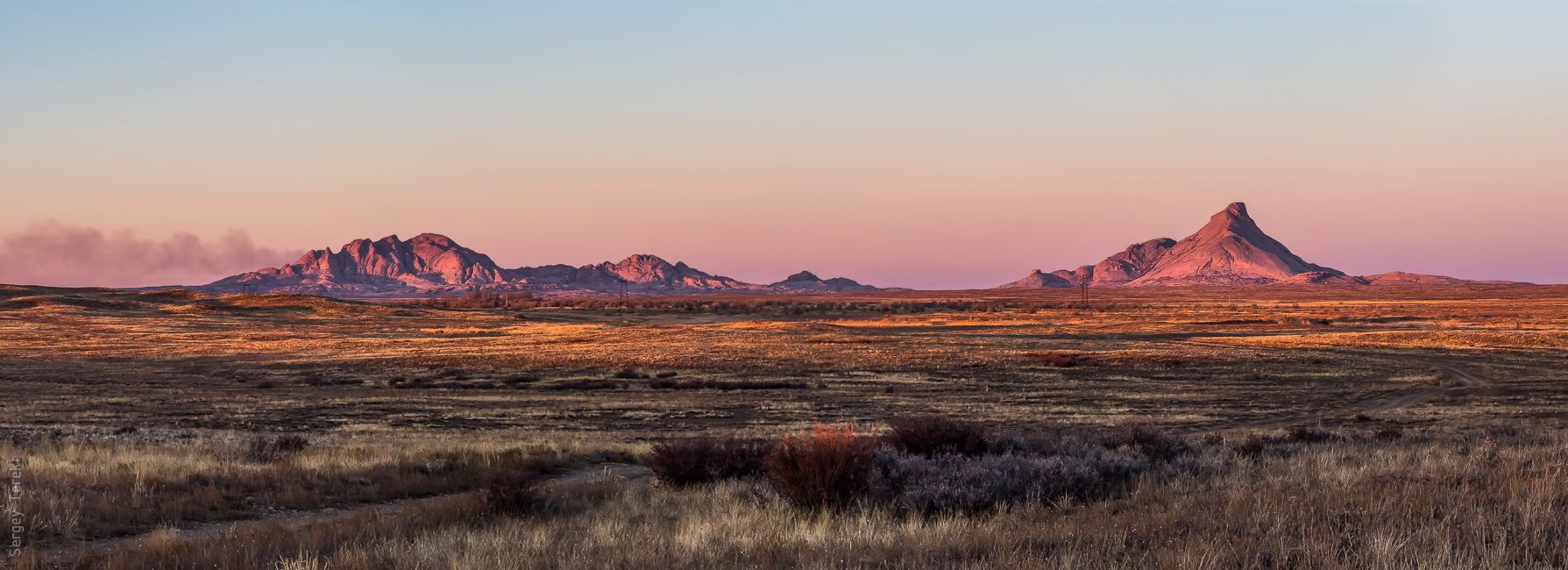 панорама горы Сарыкулжа 1082 м и горы Бектауата 1214 м