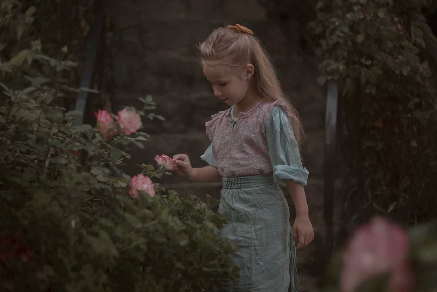 девочка сад лето цветы детство сказка