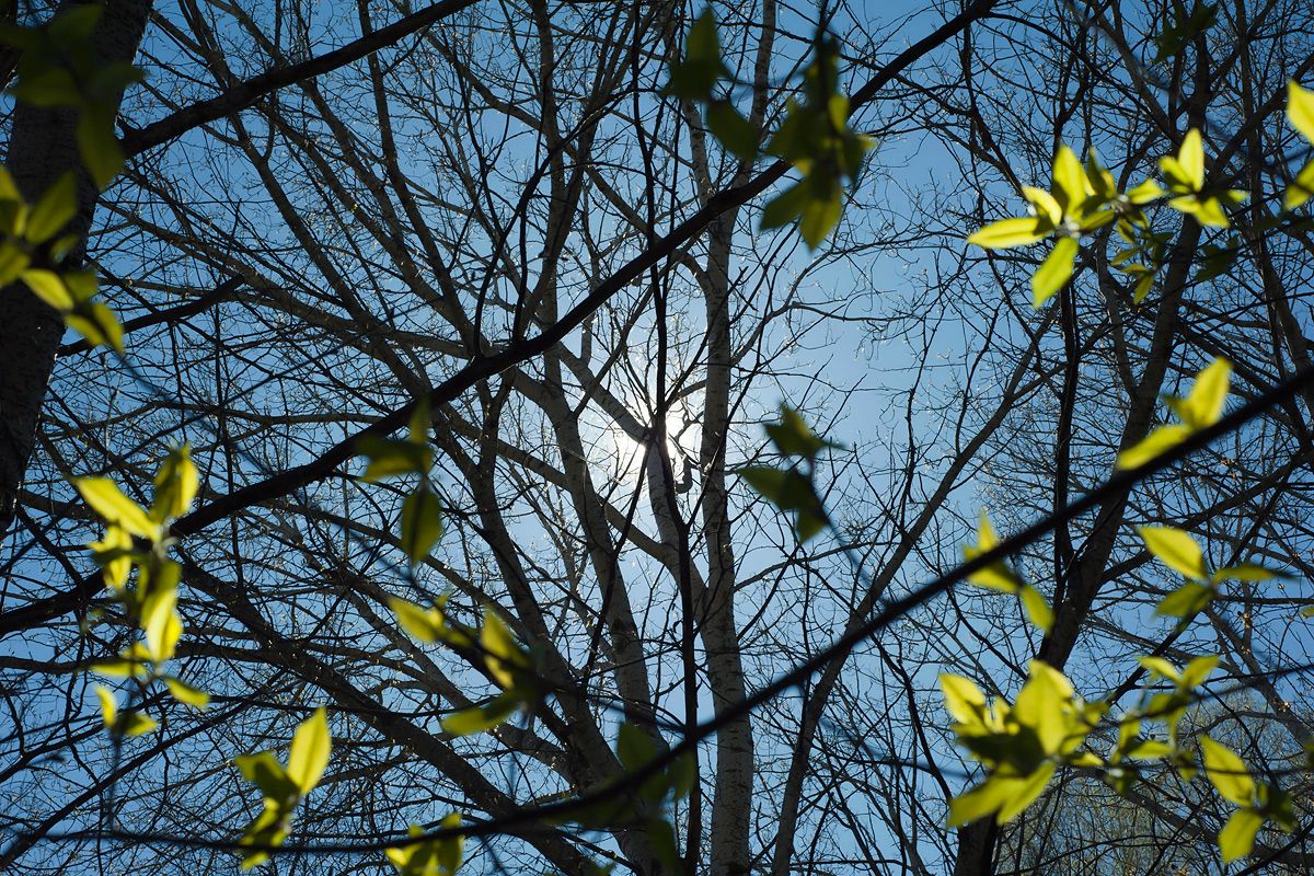 Правда, в этом году есть свои особенности: морозом 4 мая прибило молодые листья на дубах. В итоге черёмуха уже цвела, а дубы стояли совсем голые... (Этой серии это правда никак не касается, она снята ещё в апреле).