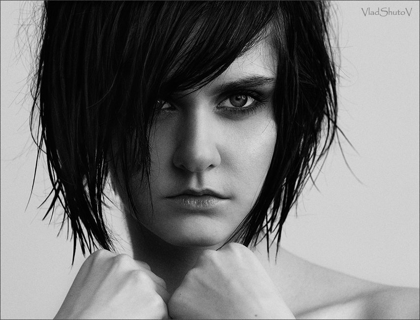 короткая черная стрижка.красивая злая.ведь не все красивы когда улыбаются.
