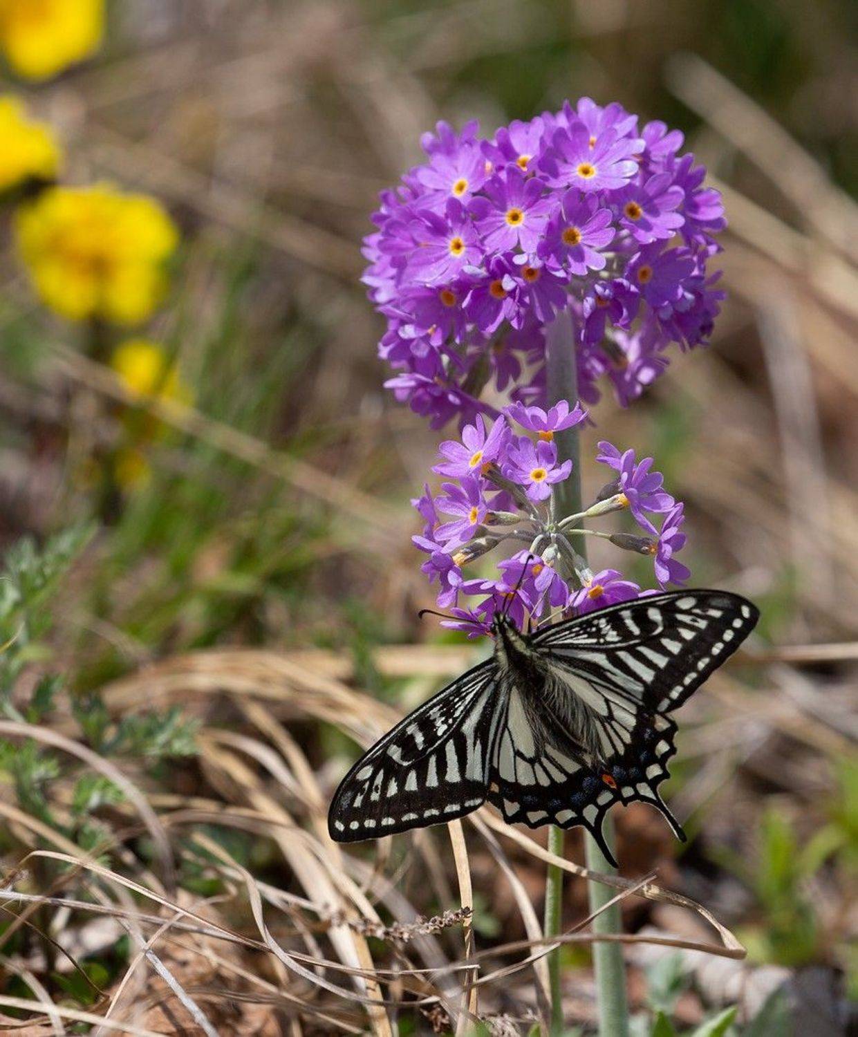 Дальневосточный вид бабочек-парусников Ксут (Papilio xuthus) на цветах примулы. На первый взгляд похож на Махаона, но все же отличия существенные. Снято на о. Русский во Владивостоке в лесном массиве вблизи Университета (ДВФУ).