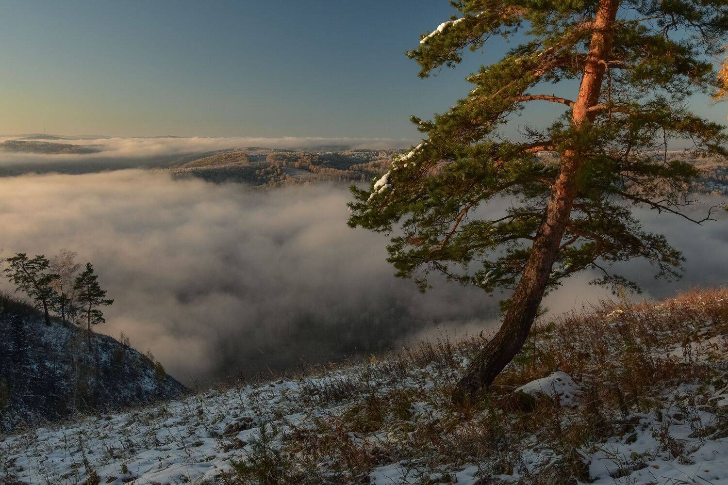 Туманное утро на Катунских утёсов
