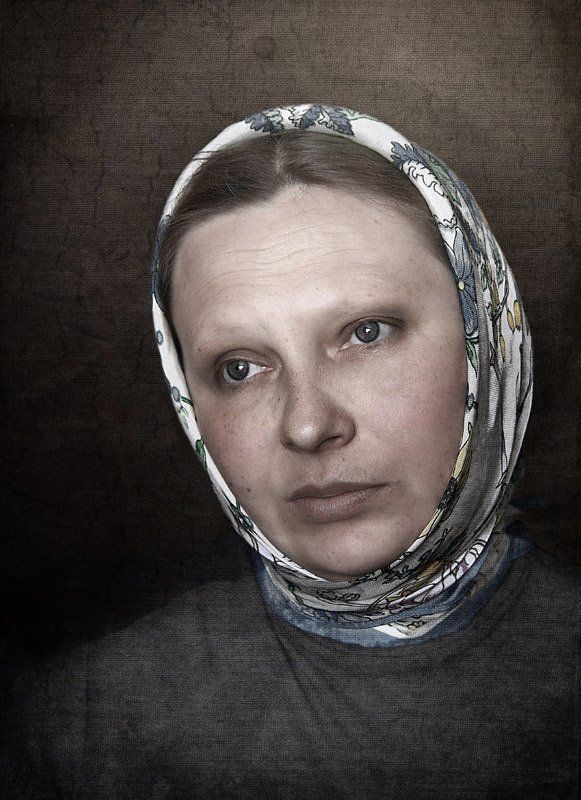 Сливается текстура фона и одежда, а вот лицо резко выбивается "чистотой" - по мне - очень неестественно, а сюжет и образ - 5!