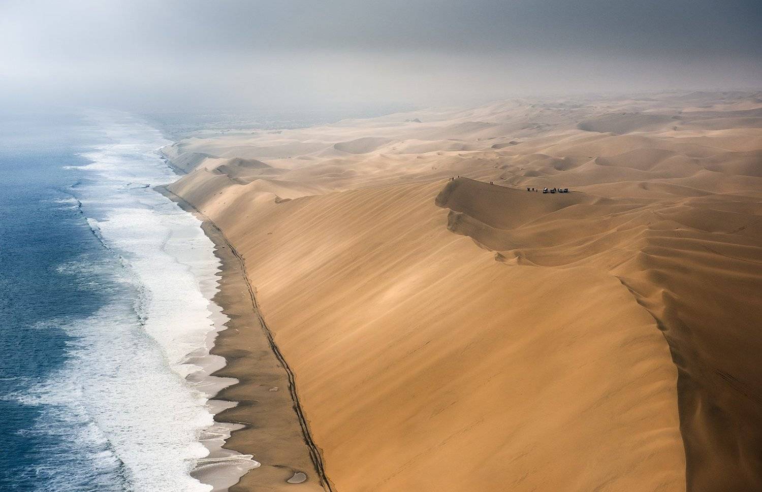Южная Часть Берега Скелетов, Намибия. Это место называется Сэндвич Харбор, и сюда возять туристов, посмотреть на всю красоту пустыни Намиб. В этом месте ( у побережья), пустыня совсем другая. Дюны не высокие, цвета крема брюлле, отвесно падают в океан. Здесь встречается холодное течение Атлантики и жаркий воздух пустыни. Здесь часто стоят сильнейшие туманы, здесь нет жизни, лишь изредка можно увидеть останки разбившихся кораблей..Здесь стоит побывать хоть раз в жизни....чтобы почувствовать всю красоту местности и прикостнуться к кусочку безконечности....-бесконечные пески (до горизонта), бесконечный океан,,,бесконечная пустота... — в Намибия.