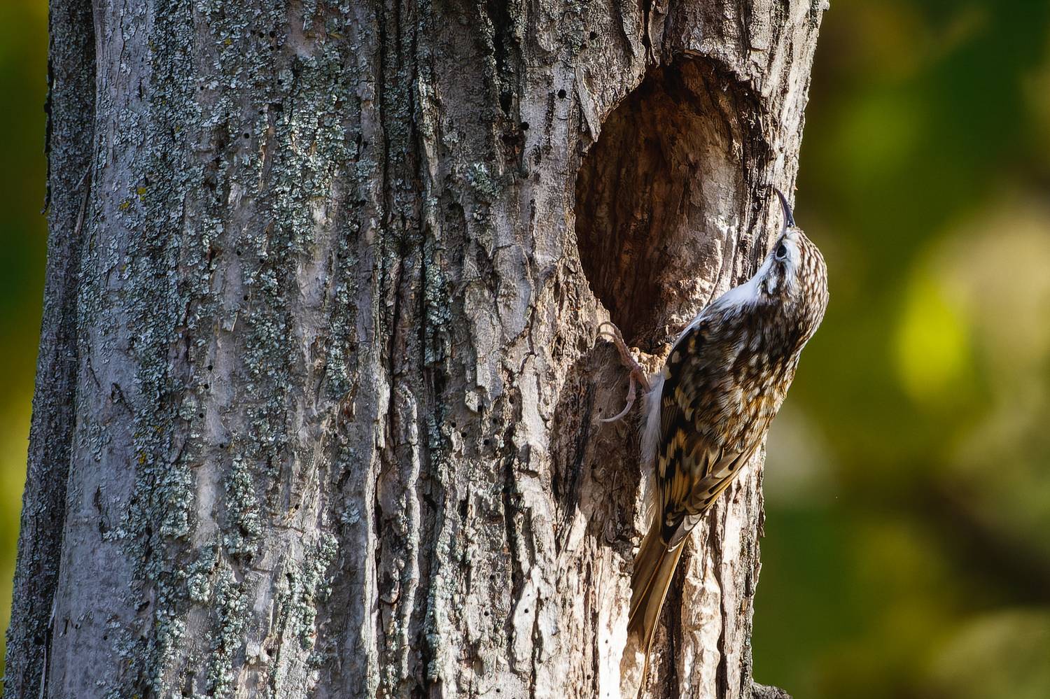 Весной в этом дупле гнездятся скворцы, а осенью вот пищухи заглядывают.