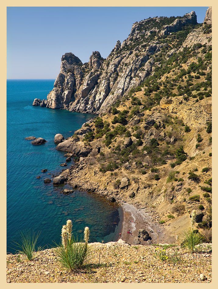рамка песочного цвета, чтобы и компенсировать это ярко синее мире, ну и дабы усилить ощущение пляжа :)