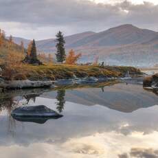 Фотоэкспедиция — «Колымская осень на Юге». Золотая осень в южных отрогах горной системы Черского. Хребет Оханджа. Озеро Юг.