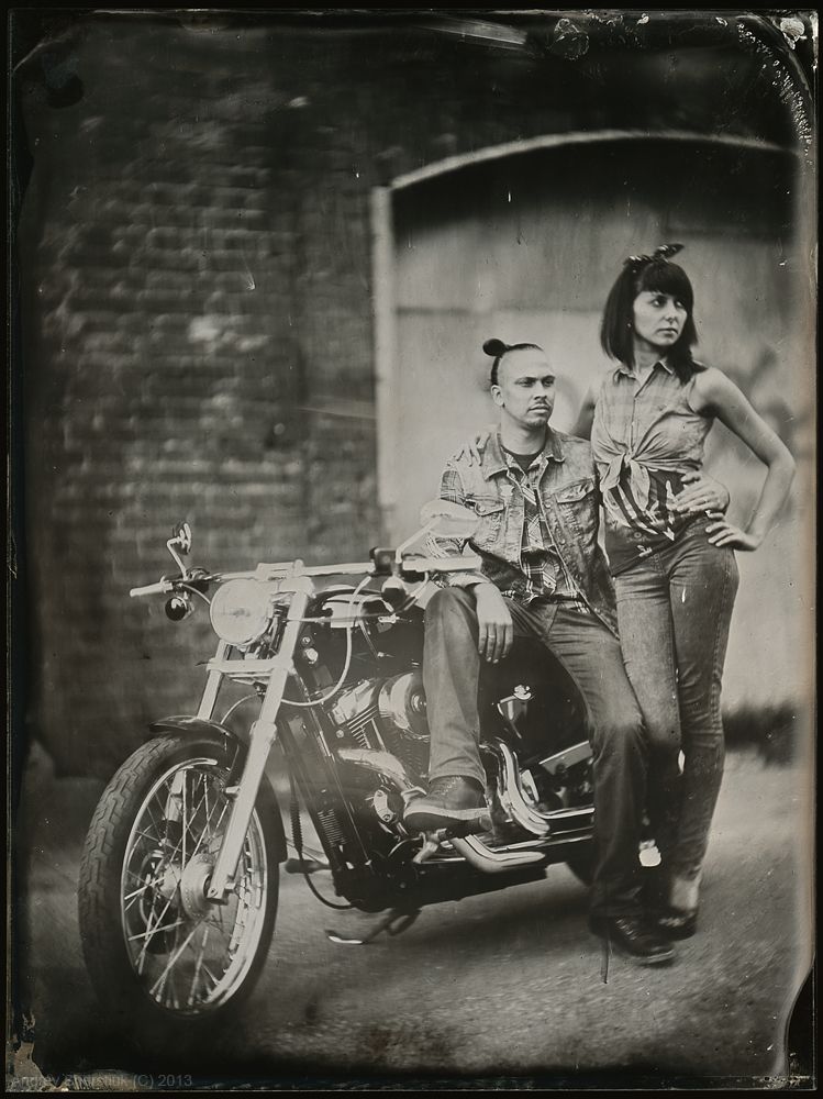 День Амбротипии в мотоциклетном клубе Мото-М. Спасибо ребятм за помощь в организации! Амбротипы на прозрачном стекле 18х24 см. Модели: Андрей, Мария, Никита, Максим, Егор, Илья, а так же 7 харлеев и 1 хонда :)