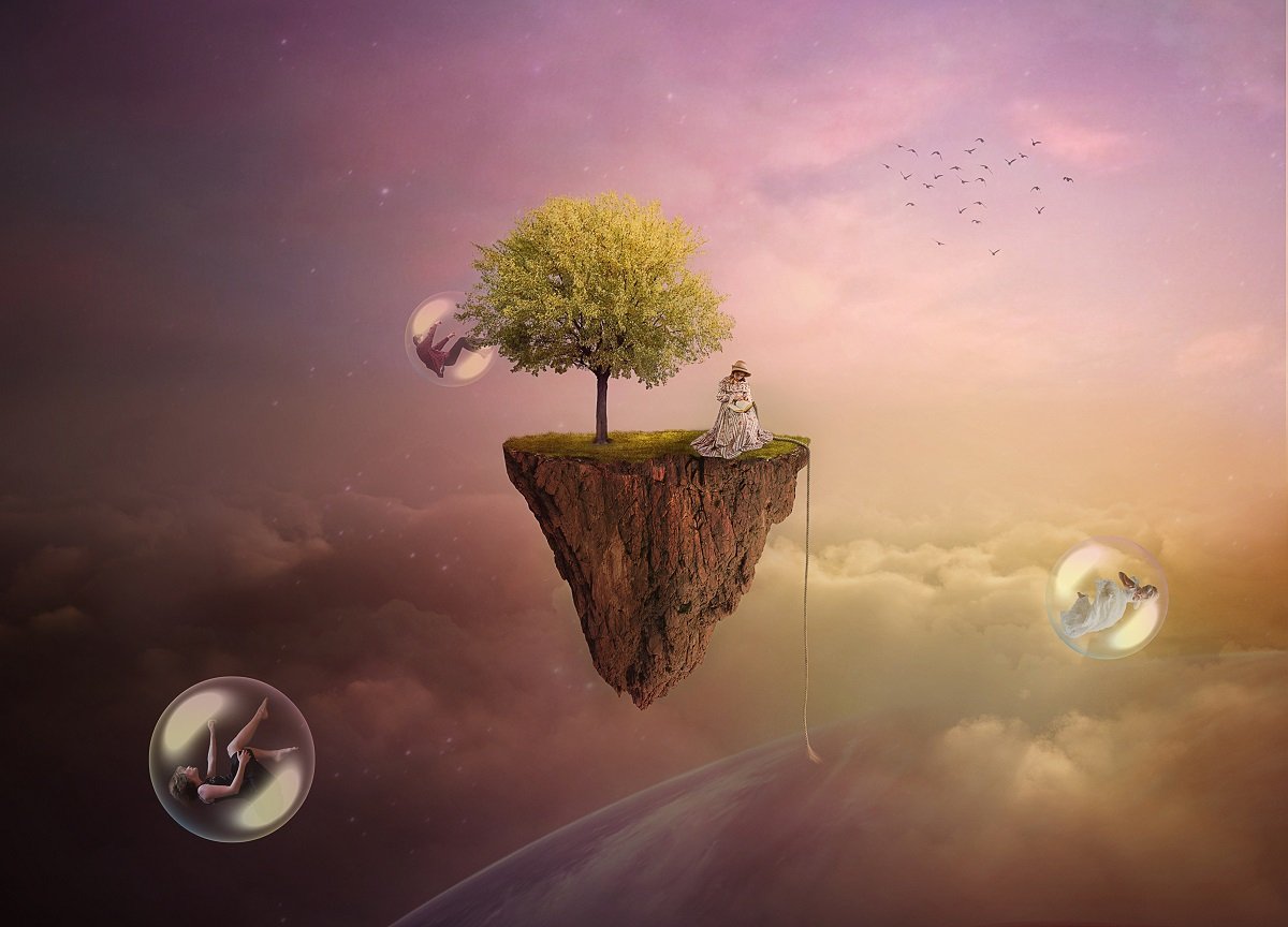 облака, девушка, мыльный пузырь, Sergii Vidov