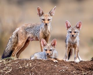 Fox Family -Indian fox mother with her two cubs.