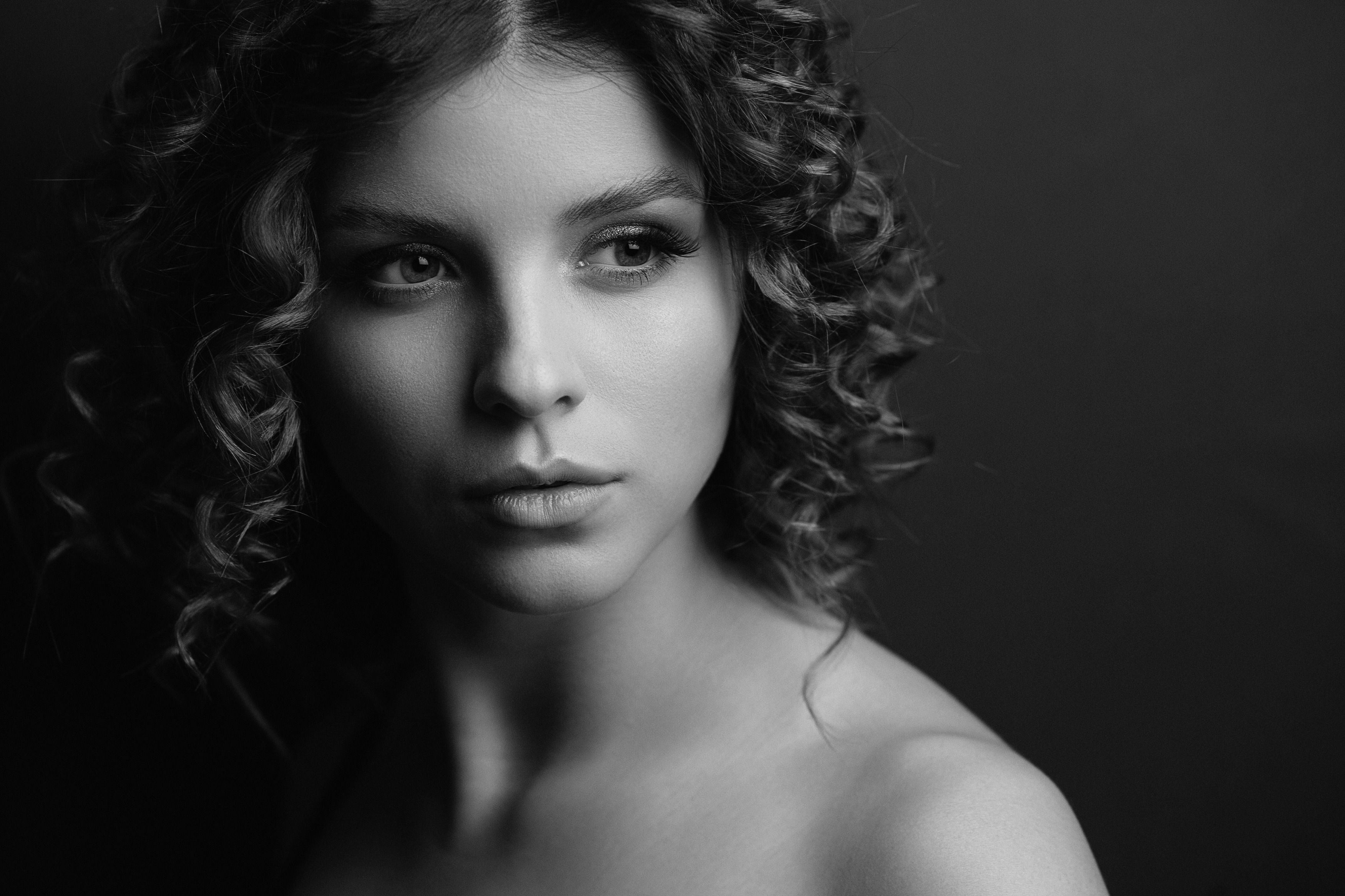 This evocative monochrome portrait by Vladimir Vasilev centers on Sasha, whose intense gaze and voluminous curls create a powerful visual narrative. Set against a minimalist dark backdrop, the interplay of light and shadow accentuates her facial features and emotional depth. The image exemplifies editorial elegance — timeless, intimate, and rich in texture. Perfect for fashion or art publications seeking to convey mood through minimalism and mastery of tone.