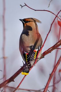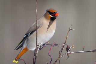 Красавицы-свиристели объедают прошлогодний шиповник.