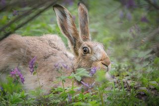 Заяц Русак в цветах Хохлатки