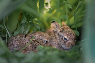 Зайчата в листьях тюльпанов