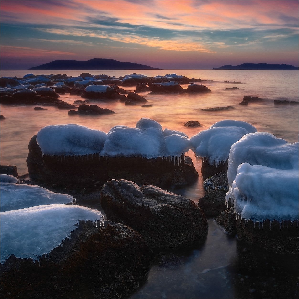 Зима, Камни, Лёд, Море, Облака, Утро, Андрей Кровлин