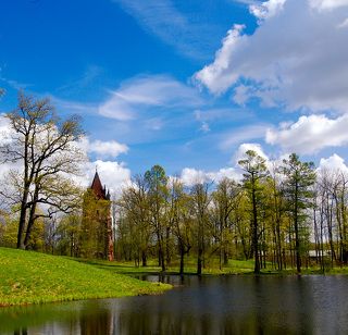 У большого пруда.