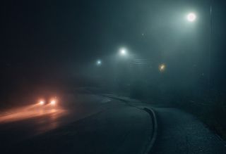 Ратрак исчезает в снежном тумане...